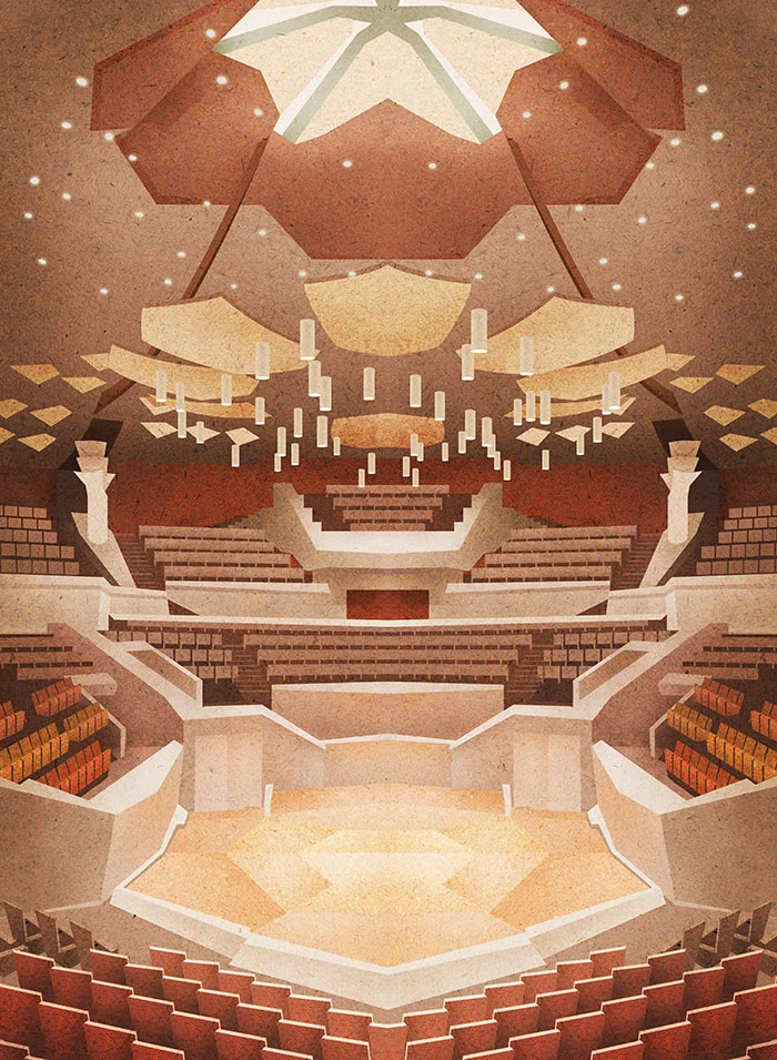 For a feature in Wallpaper* Magazine guest edited by Pianist Lang Lang. It depicts several of his favourite auditoriums.